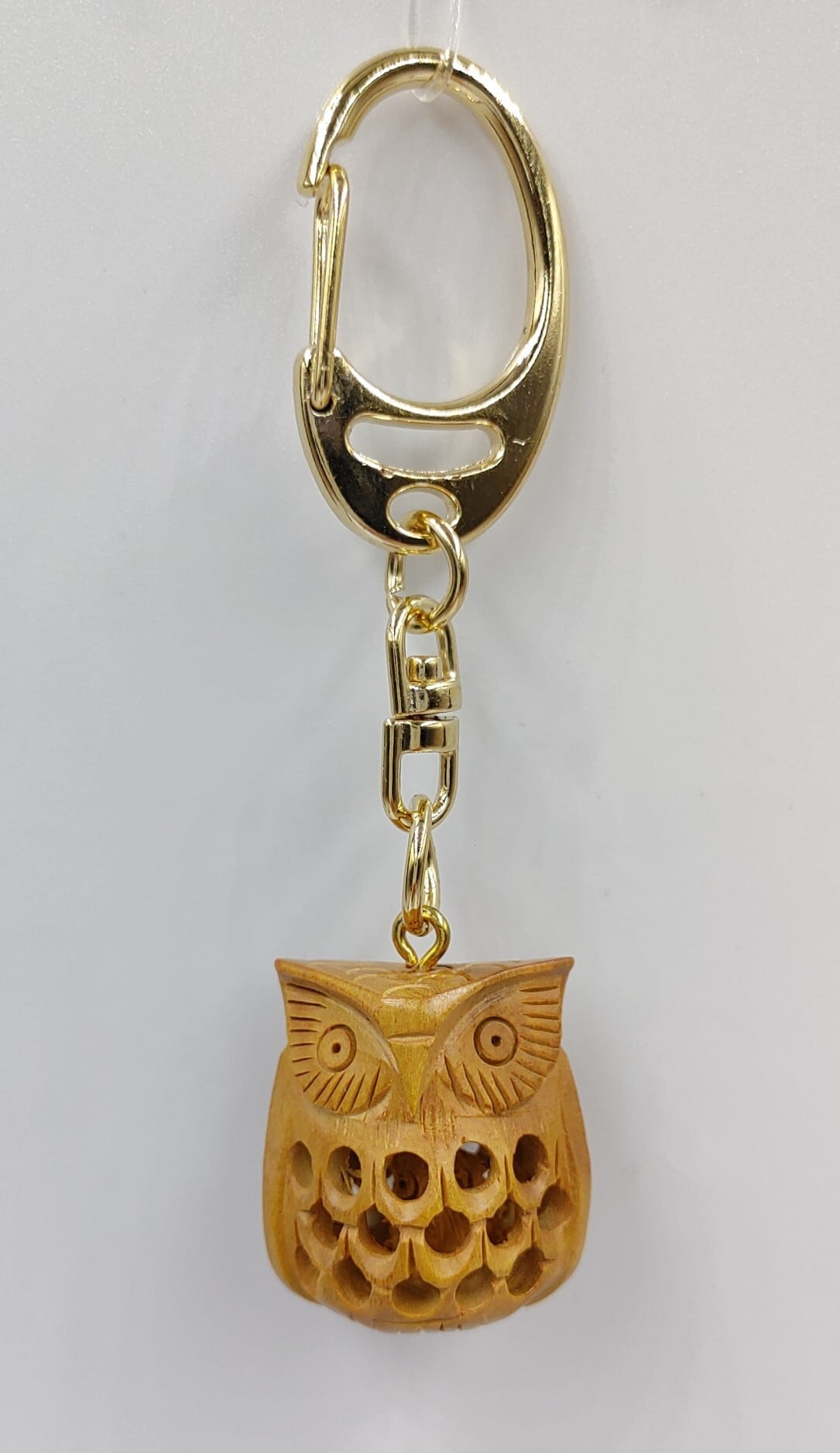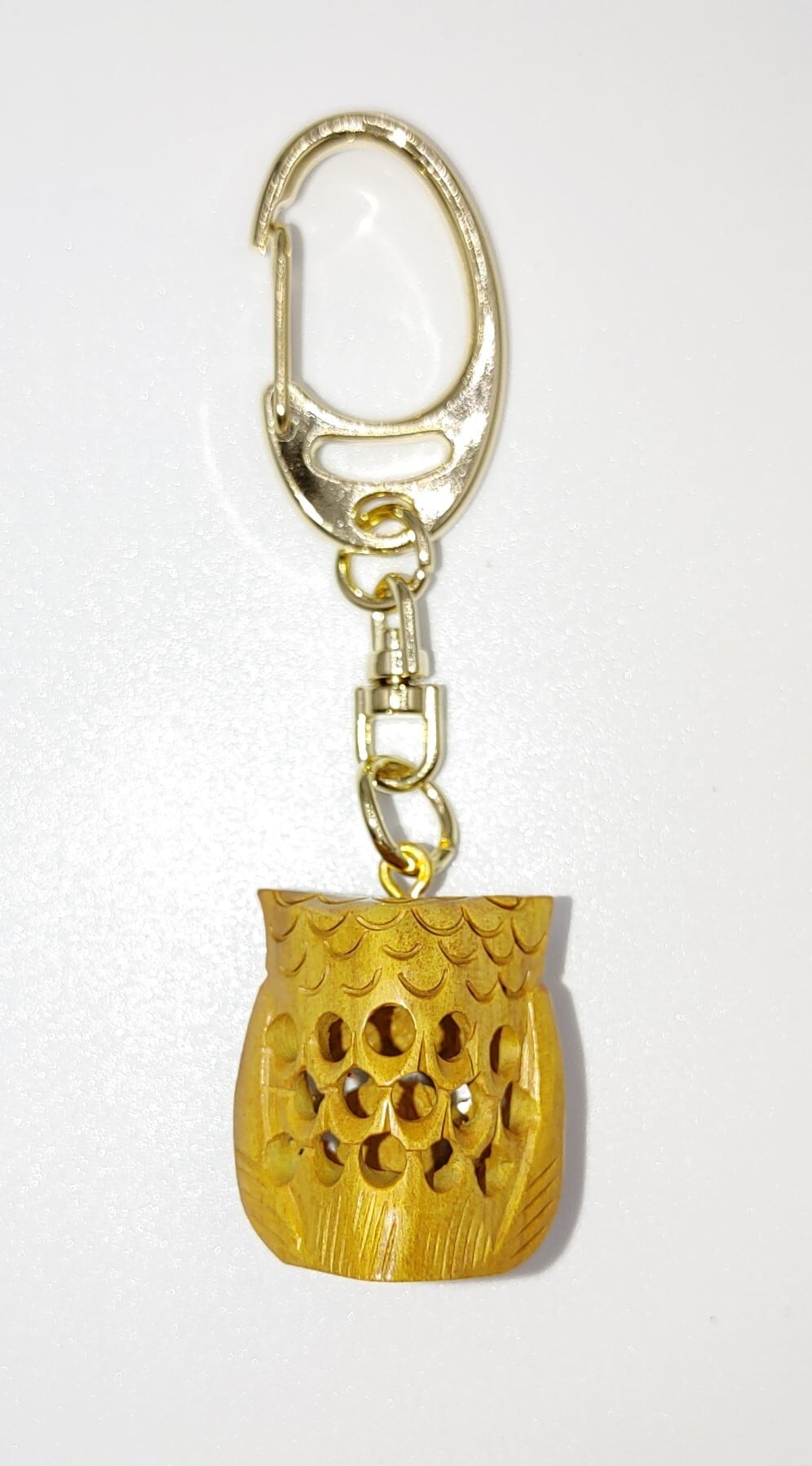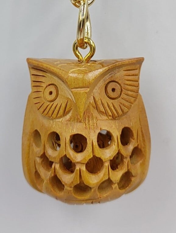 キーホルダー 透かし彫り シマフクロウ 白檀