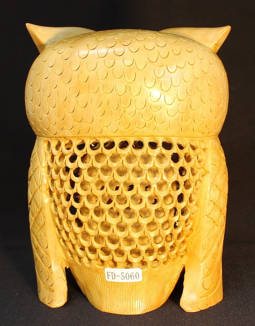 透かし三重彫り シマフクロウ 高さ 15cm